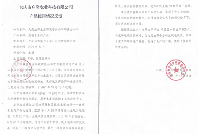 與多所高校、研究院、各大種業(yè)企業(yè)合作種植改良鹽堿地水稻。在黑龍江、吉林、內(nèi)蒙古等地有多處示范基地。在新疆等地區(qū)種植草木,環(huán)境綠化等工程。幾年來,啟隆人大力弘揚(yáng)“創(chuàng)新、堅(jiān)韌、拼搏、開拓”的企業(yè)精神,在研發(fā)上勇攀高峰。大慶啟隆 的企業(yè)宗旨是“誠(chéng)信于鹽堿地的朋友,服務(wù)于鹽堿地的朋友”,努力為鹽堿地改良做出積極的貢獻(xiàn)。